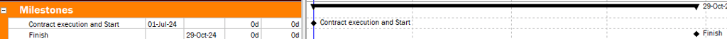In our example, milestones are collated under its own WBS. This is only for presentation and ease of reading the program. This WBS on its own does not have any intrinsic. value or logic.