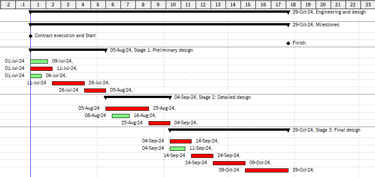 The project calendar outlines the working and non-working days for the project, including weekends, holidays, and planned downtime. It is essential that the project calendar aligns with the contracted calendar to ensure that all scheduled activities comply with the terms agreed upon with the client. Misalignment can lead to schedule delays, disputes, or claims for extensions of time.